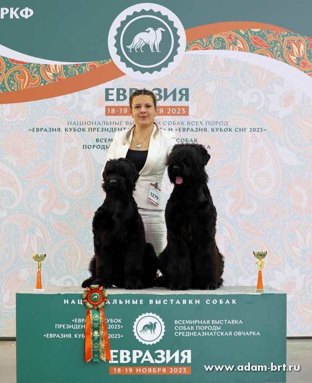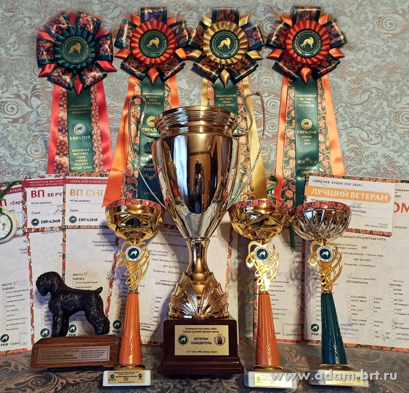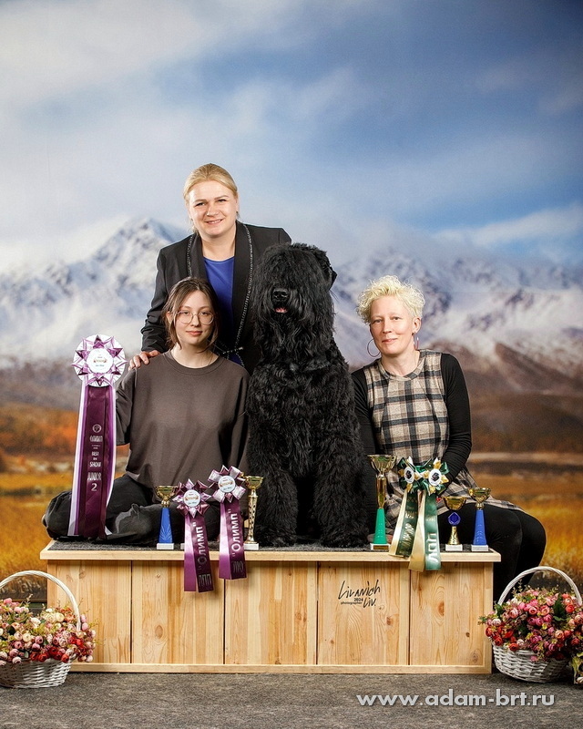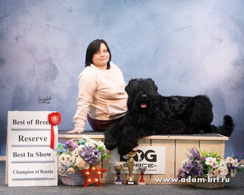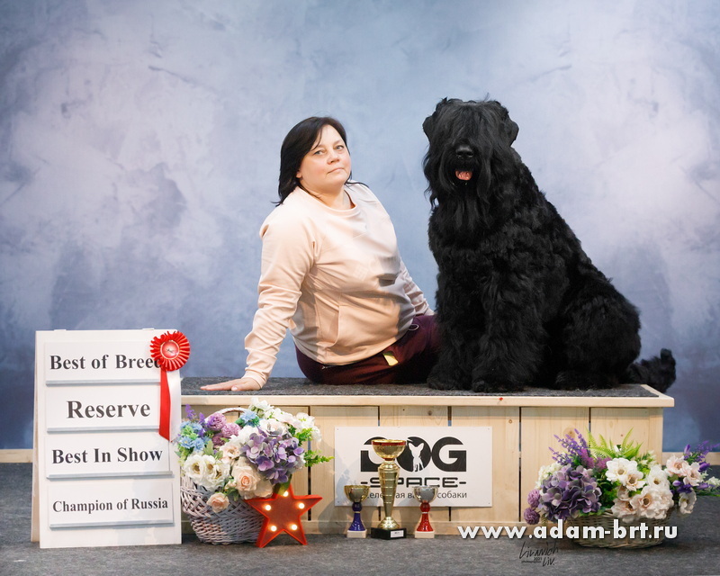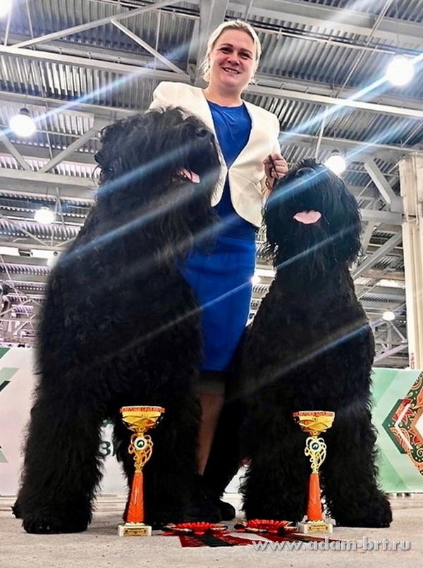 Впервые русский черный терьер поднялся на столь небывалуя высоту пьедестала! Бесценная благодарность и поздравления большой команде профессионалов, всем кто помог достичь непревзойденных результатов, Виктории Полозюковой, Анастасии Вавочкиной, Екатерине Пикуль, Татьяне Дубровской, Светлане Суховиенко, Дмитрию Котельникову и многим многим другим. Выражаем признательность экспертам и судьям, кто по достоинству оценил наши старания и заслуги.