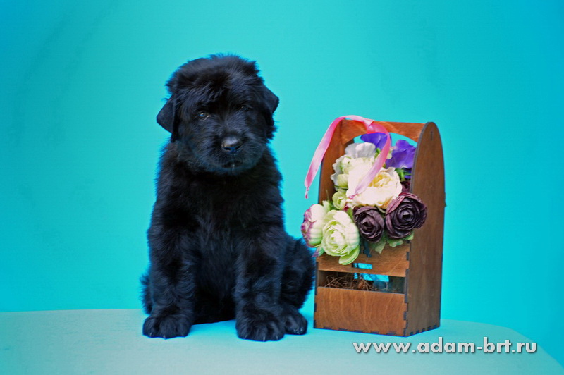 Царским деткам недавное исполнился месяц, традиционная первая фотоссесия в этот раз состоялась в праздничной студии. В новом помете к продаже предлагаются три шикарных, очень красивых и перспективных суки и три не менее знатных, крепких и слаженных кобеля, достойные продолжатели рода, великолепные щенки Русского черного терьера.