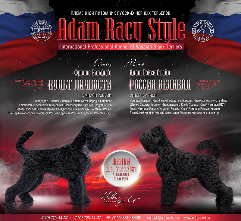Adam Racy Style РЫЦАРЬ СВЕТА - РУССКИЙ ЧЕРНЫЙ ТЕРЬЕР, ПОБЕДИТЕЛЬ РЕЙТИНГА "BEST RUSSIAN DOG" ЛУЧШИХ ПРЕДСТАВИТЕЛЕЙ САМОЙ МНОГОЧИСЛЕННОЙ, ВТОРОЙ ГРУППЫ ПОРОД КЛАССИФИКАЦИИ МЕЖДУНАРОДНОЙ КИНОЛОГИЧЕСКОЙ ФЕДЕРАЦИИ!!! ПРИЗЕР БЕСТ ИН ШОУ ЛУЧШИЕ ИЗ ЛУЧШИХ РЕЙТИНГА СОБАК РОССИЙСКОЙ ФЕДЕРАЦИИ!!