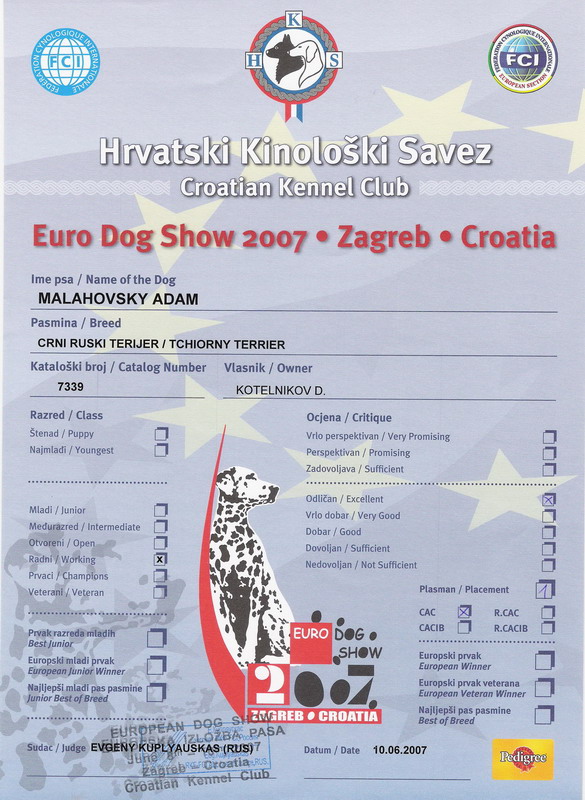 And after National BRT Club Show, having cleaned plumelets a little, people was put forward to Zagreb on the Championship of the Europe - 2007.