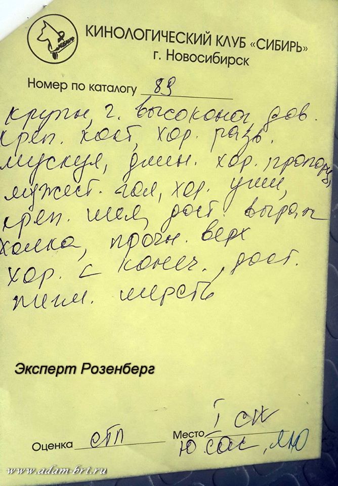 We thanks expert Marina Patrina! Thanks a lot to Tatiana Dubrovskai for the excellent preparation, show and the result of our baby! Thanks to Ekaterina Perkatova for nice grooming!