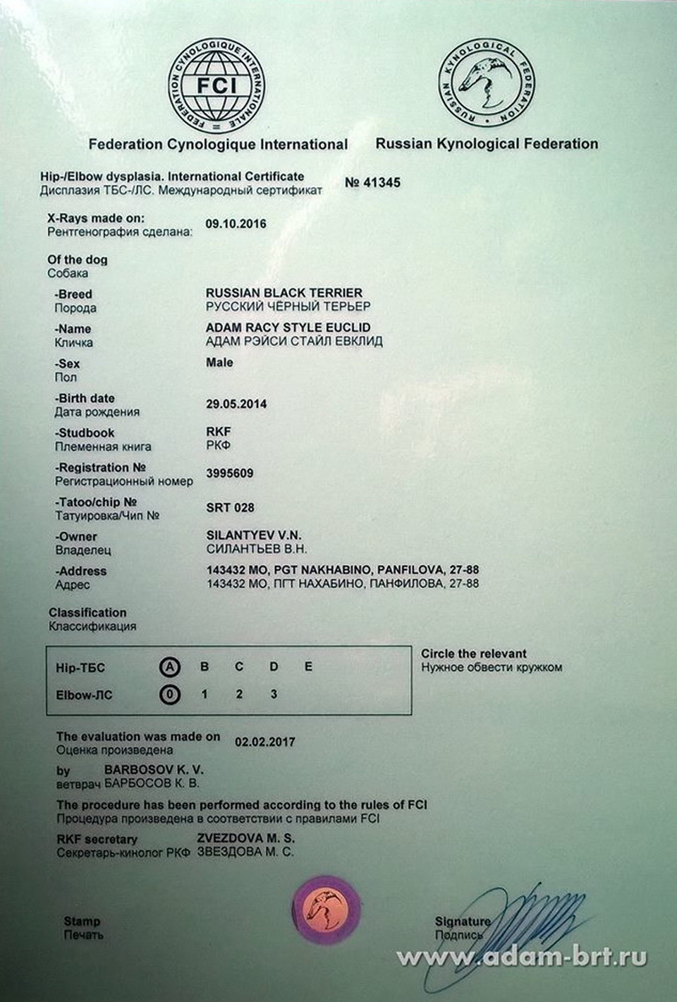 Recently in the end of December our Adam Racy Style EVA from Moscow in her two and half year under the guidance of caring owner Irina passed First degree of OKD and has got 99 balls from possible 100!