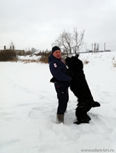 Our beautiful Adam Racy Style EVA is actively preparing for the Russian ring at specialized training area in Butovo, where he recently worked out protection elements with one and two attacking figures (couple).