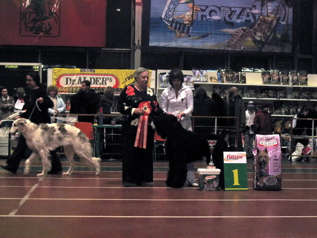 В этот раз, несмотря на положительное мнение окружающих о достойном экстерьере и движениях Адама, эксперту мы не очень приглянулись и прошли только четвертыми среди самых именитых кобелей в Классе ЧЕМПИОНОВ НАЦИОНАЛЬНОГО КЛУБА ПОРОДЫ.
