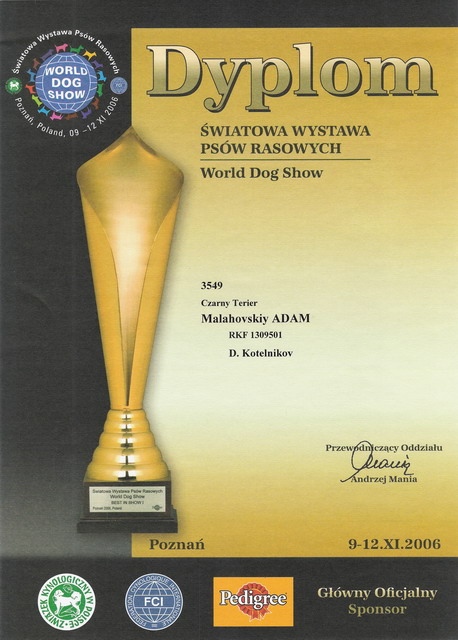 Более тридцати собак в классе чемпионов, профессиональный эксперт, грамотное и жесткое судейство кобелей, куча "оч. хоров" и... мы в пятерке победителей в классе Чемпионов на Чемпионате МИРА - 2006 в Познане!