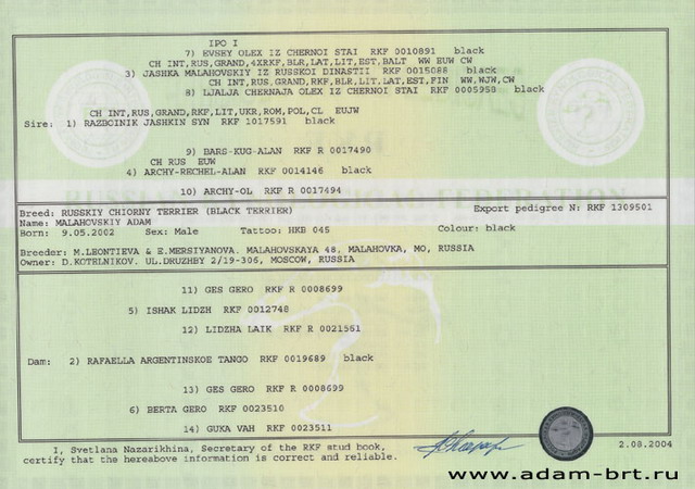 2006-2007: новости племенного питомника русских черных терьеров АДАМ РЭЙСИ СТАЙЛ