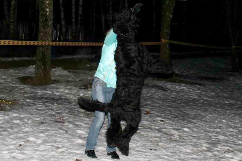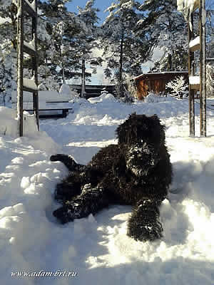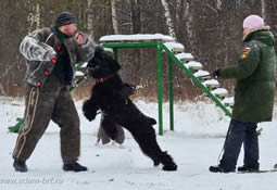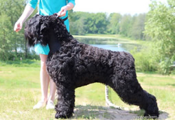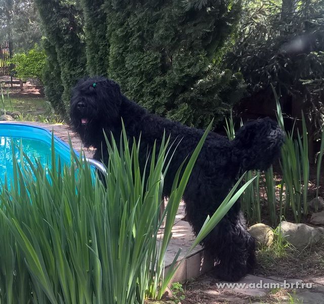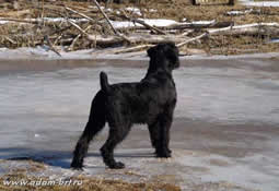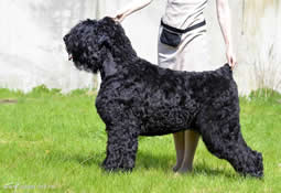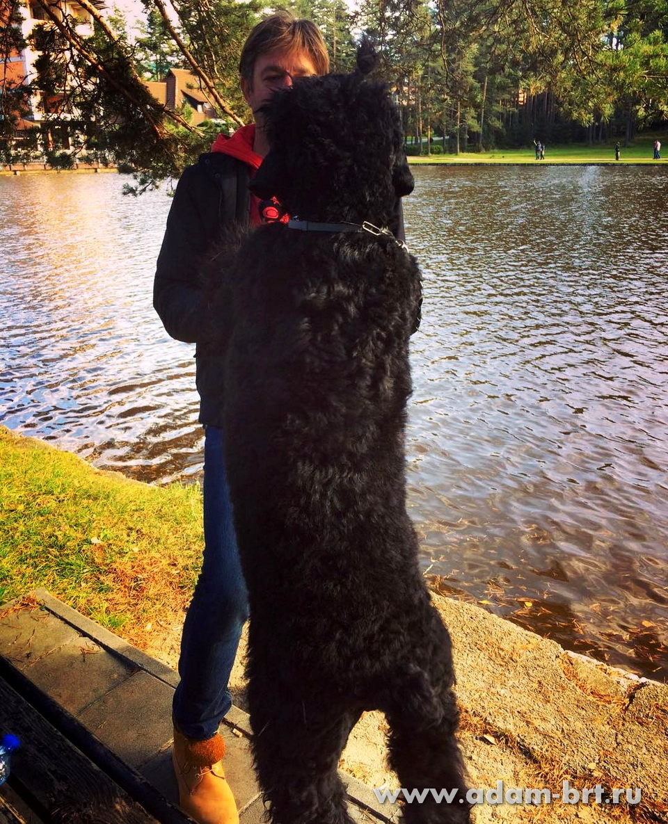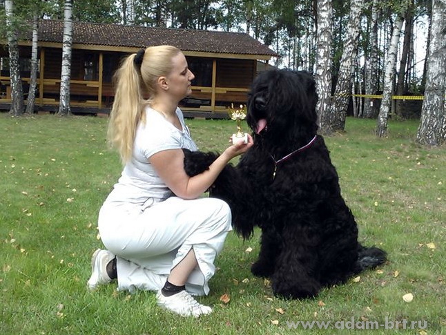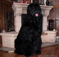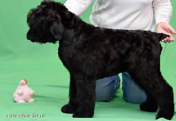На фото Адам Рэйси Стайл РЫЦАРЬ СВЕТА - мощный парень с прекрасной анатомией, жесткой породной шерстью и характером настоящего Русского черного терьера.