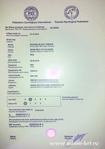Кандидат в Интер Чемпионы. Сертификаты: 2 х CACIB, 2 х ЛУЧШАЯ СОБАКА ВЫСТАВКИ-II, 1 х ЛУЧШАЯ СОБАКА ЮНИОР, 2 х ЛУЧШАЯ СОБАКА ВЫСТАВКИ-III и другие.