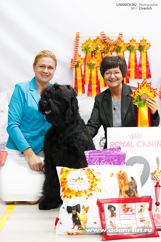 Отдельно поздравляем любимую Беренис, маму и бабушку девяти участников и победителей этого шоу! Огромнейшие поздравления и громкие слова благодарности нашим уральским Заводчикам и лично Руководителю филиала Питомника в УФО РФ Оксане Чепканич за самоотверженный труд и безмерный вклад в развитие породы РУССКИЙ ЧЕРНЫЙ ТЕРЬЕР