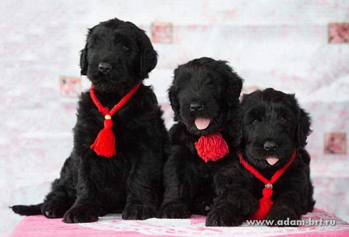Новый помет питомника с очень интересными кровями и более чем достойными родителями. К резервированию и продаже предлагаются великолепные щенки Русского черного терьера, три очень красивых девочки и два замечательных мальчика, будущие чемпионы выставочных рингов и покорители дрессировочных площадок.