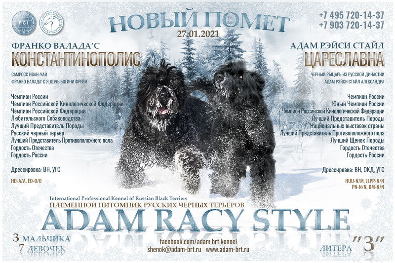 Адам Рэйси Стайл РЫЦАРЬ СВЕТА - РУССКИЙ ЧЕРНЫЙ ТЕРЬЕР, ПОБЕДИТЕЛЬ РЕЙТИНГА "BEST RUSSIAN DOG" ЛУЧШИХ ПРЕДСТАВИТЕЛЕЙ САМОЙ МНОГОЧИСЛЕННОЙ, ВТОРОЙ ГРУППЫ ПОРОД КЛАССИФИКАЦИИ МЕЖДУНАРОДНОЙ КИНОЛОГИЧЕСКОЙ ФЕДЕРАЦИИ!!! ПРИЗЕР БЕСТ ИН ШОУ ЛУЧШИЕ ИЗ ЛУЧШИХ РЕЙТИНГА СОБАК РОССИЙСКОЙ ФЕДЕРАЦИИ!!!