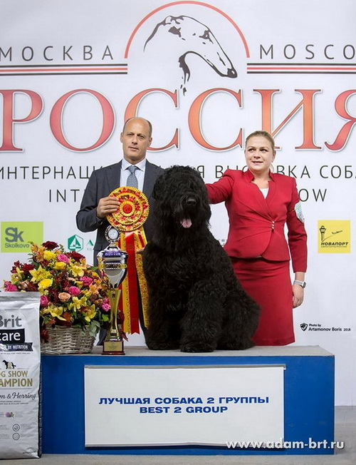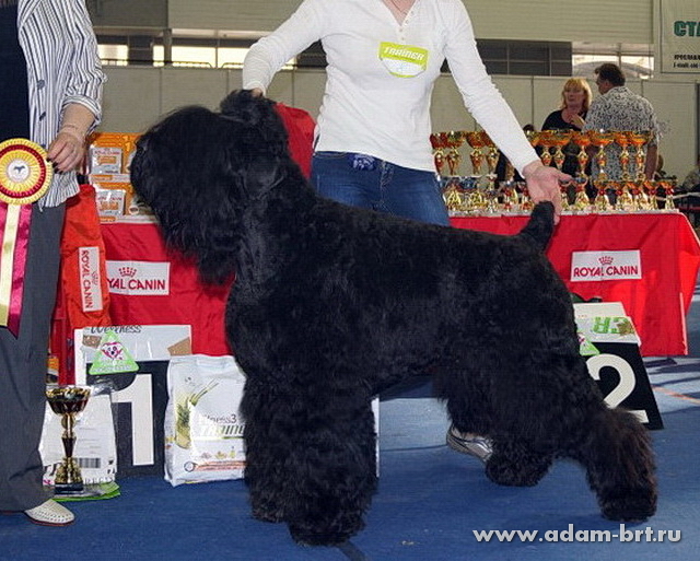 Имеет титулы: Чемпион Национального клуба породы (НКП), Чемпион Российской кинологической федерации (РКФ), Юный Чемпион НКП Русский черный терьер, Гранд Чемпион России, Интерчемпион (FCI) Кандидат, Чемпион России (ЧР), Юный Чемпион России, Чемпион Беларуси и другие. Тесты: HD - А/A, ED - 0/0, HUU - N/N.