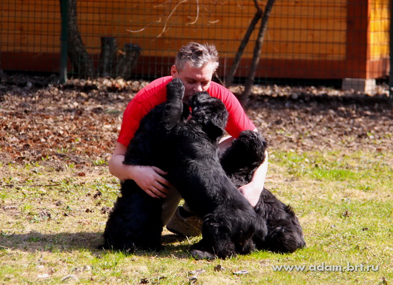 Аллоннычи, они такие Аполлонычи! В питерском помете здоровяков свободны к резервированию щенки Русского черного терьера, три мальчика, крупные, коститстые, и одна девочка, очень элегантная.