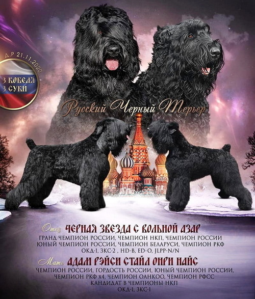 Новогодний помет будущих чемпионов. Крупные, статные ребята, продолжатели славной линии Адама и Аполлона. Для резервирования - породные щенки Русского черного терьера из питомника, одна красивая и очень перспективная сука и три замечательных кобеля.